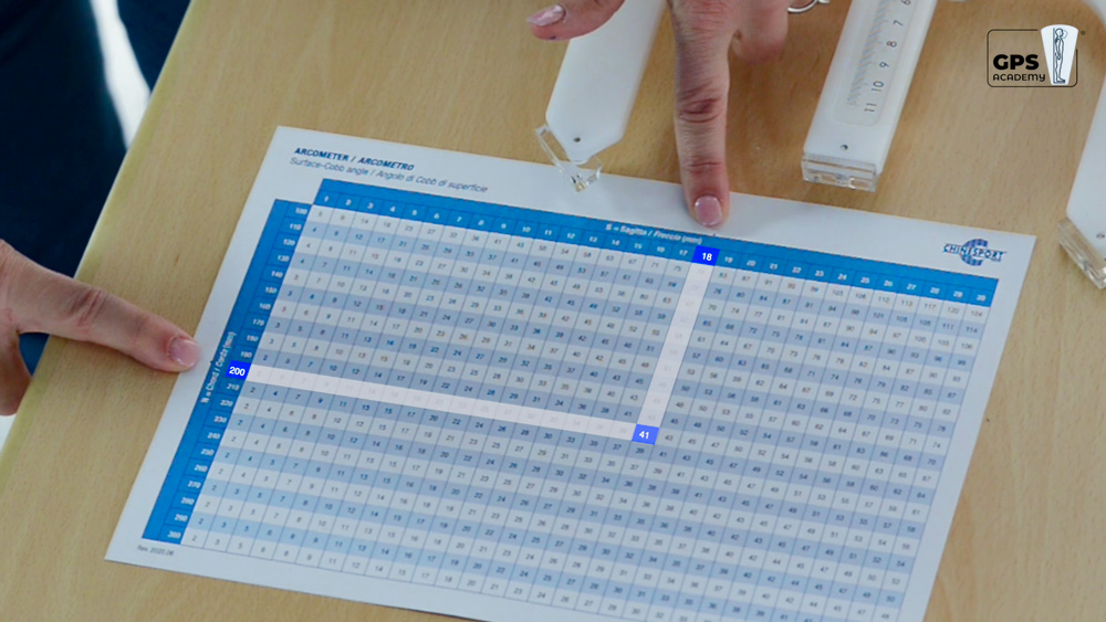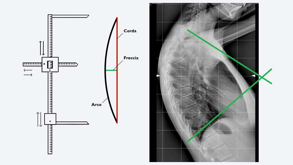 Lo strumento ci fornisce due dati relativi al tratto di rachide misurato, approssimato ad un settore di circonferenza: la freccia e la corda. Partendo da questi due dati possiamo ottenere: